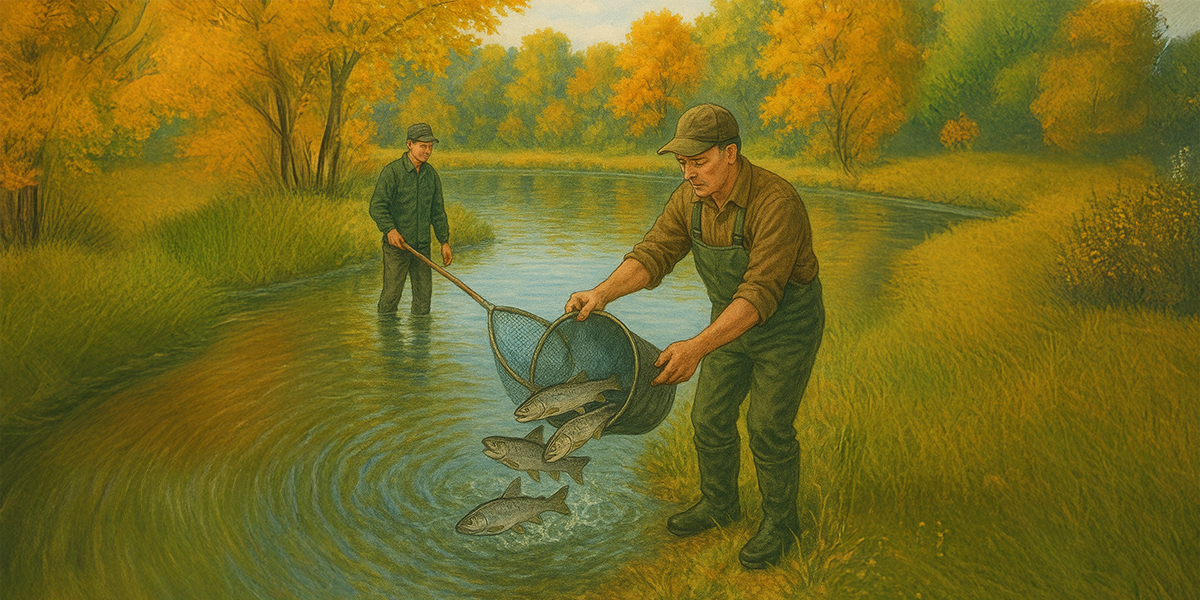 Der erste Forellenbesatz im Herbst wird nach einer Unterschreitung der Wassertemperatur von 16°C in 1,5 Meter Tiefe in Alkoven durchgeführt.